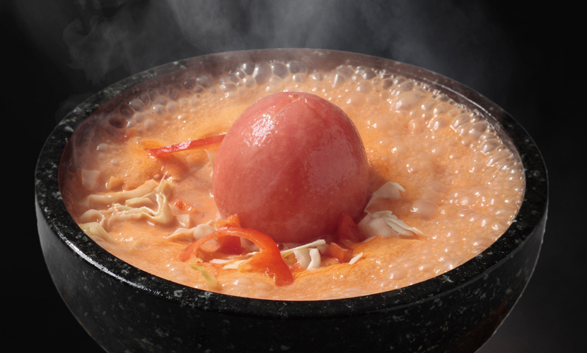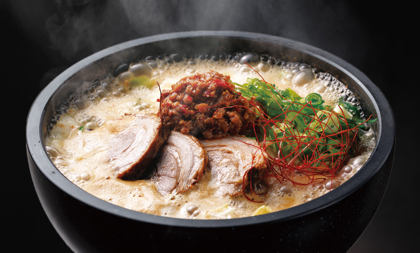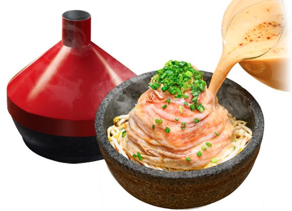 350℃の熱々の石釜で、極太麺と野菜を贅沢に使用した新感覚のラーメン。お客様の目の前で、熱々のスープをかけて仕上げます。円錐形の蓋から立ち上る湯気は、まるで火山の噴火を思わせます。具材が熱々の石釜に触れることで発生する「おこげ」は、香ばしい香りと食感を生み出します。シンガポールとタイで成功を収めたこの前代未聞のラーメンを皮切りに、世界展開を目指しています。