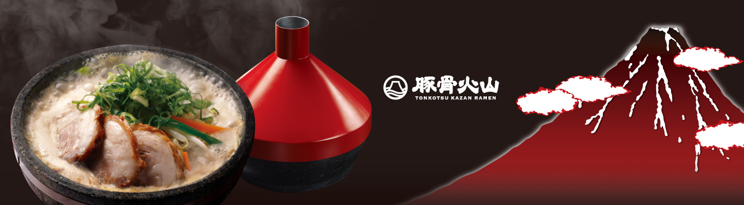 350℃の熱々の石釜で、極太麺と野菜を贅沢に使用した新感覚のラーメン。お客様の目の前で、熱々のスープをかけて仕上げます。円錐形の蓋から立ち上る湯気は、まるで火山の噴火を思わせます。具材が熱々の石釜に触れることで発生する「おこげ」は、香ばしい香りと食感を生み出します。シンガポールとタイで成功を収めたこの前代未聞のラーメンを皮切りに、世界展開を目指しています。